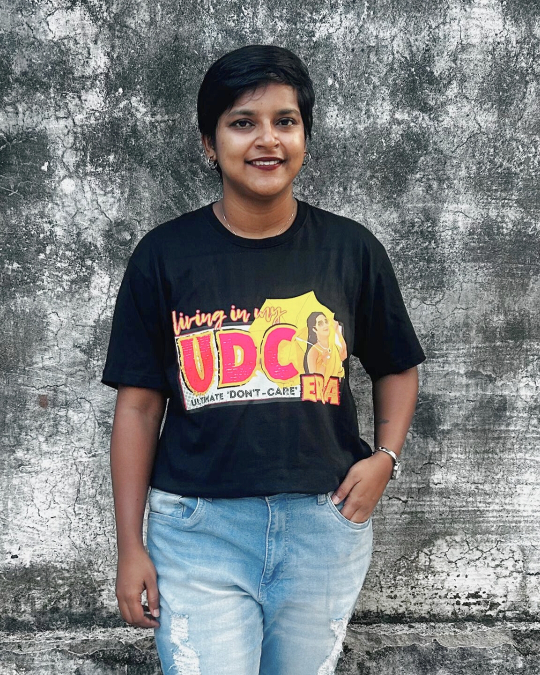 Embrace the spirit of carefree confidence with our Ultimate Don’t Care (UDC) Tee. Inspired by the iconic attitude of the beloved actress Kalpana, this tee is a tribute to those who march to the beat of their own drum.
